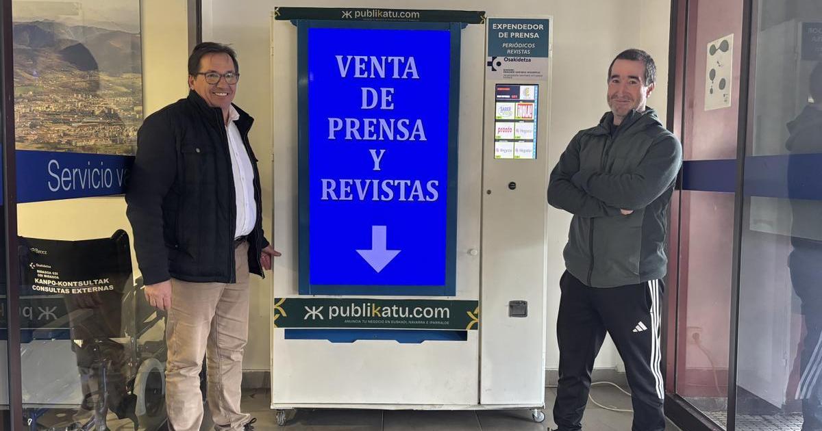 El Hospital Comarcal del Bidasoa se ha convertido hoy en el primer centro hospitalario de Gipuzkoa en contar con una máquina expendedora de prensa. La iniciativa llega impulsada por la empresa burgalesa Punto de Prensa y la librería Txiribin Txaraban de Pasaia Antxo.