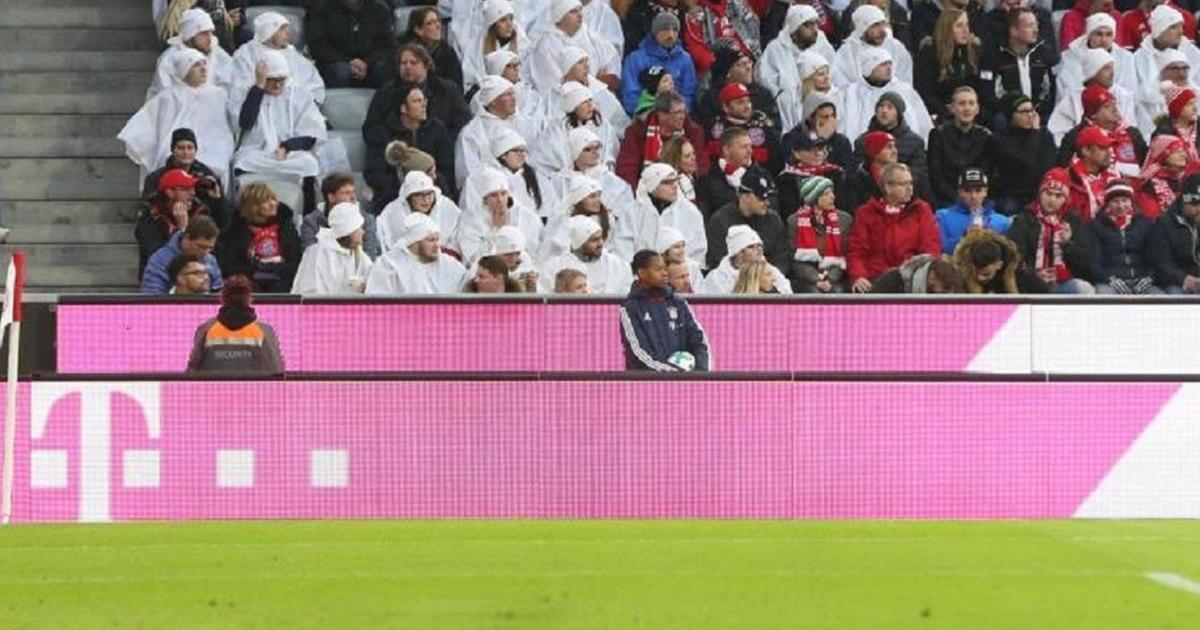 ¿A qué se debe esa situación tan extraña? Es una acción publicitaria. Deutsche Telekom, la principal empresa de telecomunicaciones de Alemania y de toda Europa, es el principal patrocinador del Bayern, y fijándose en las personas que visten de blanco, forman el logo de esa empresa, que es una gran T, con cuatro cuadrados pequeños a su alrededor, uno a un lado y tres al otro.