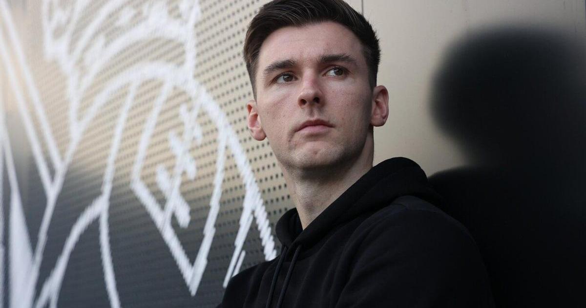 Kieran Tierney posa en Zubieta. / IKER AZURMENDI