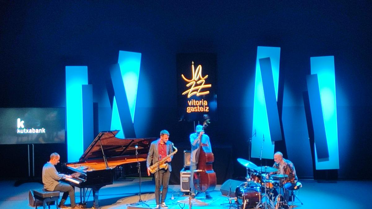Había expectación por conocer el nuevo escenario del Festival de Jazz de Vitoria Gasteiz, que sustituye al Teatro Principal por las obras de remodelación que se están llevando a cabo. El Auditorio María de Maeztu del Palacio de Congresos se estrenó este lunes con una acústica perfecta y un escenario iluminado suavemente de azul que trasladaba al espectador a un club de jazz de Greenwich Village o Harlem en Nueva York.