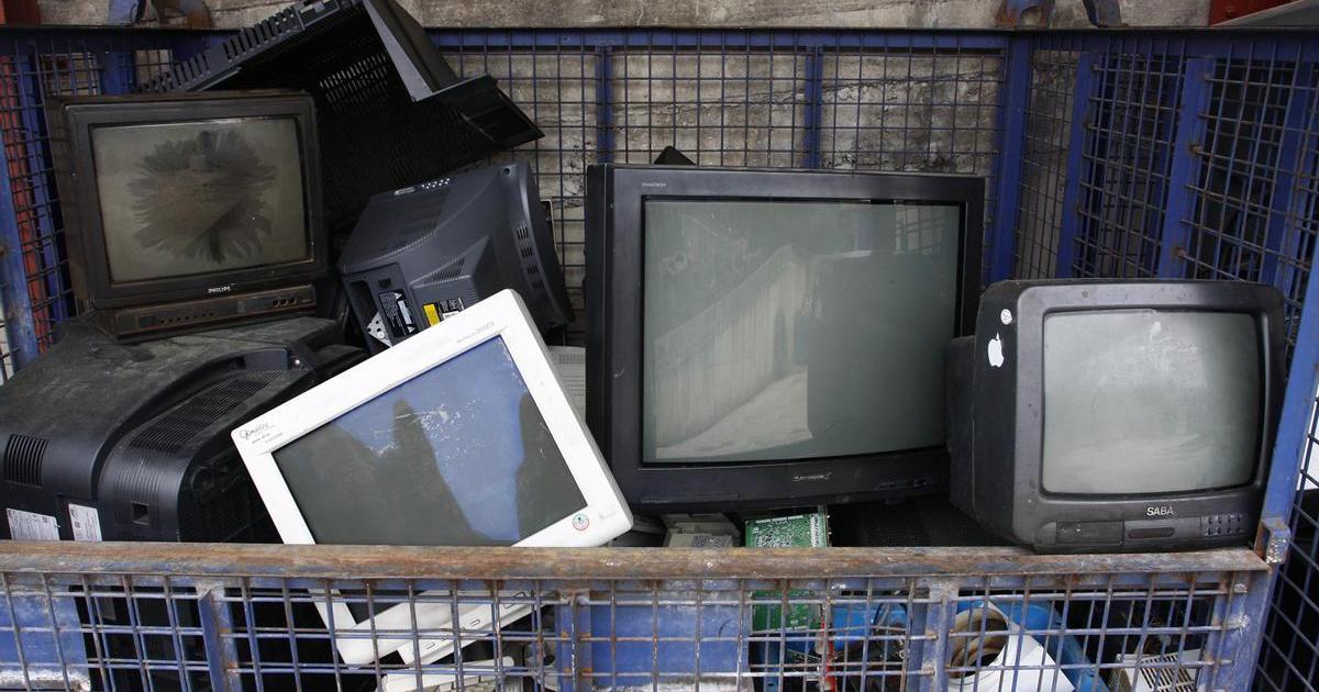 Televisores apilados en el Garbigune de Azkoitia. / Ainara Garcia