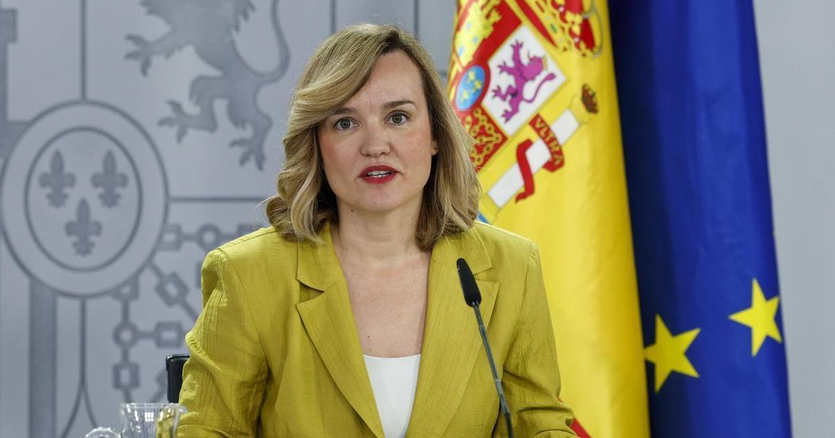 La ministra de Educación y Portavoz del Gobierno, Pilar Alegría, durante su intervención en la rueda de prensa posterior al Consejo de ministros.