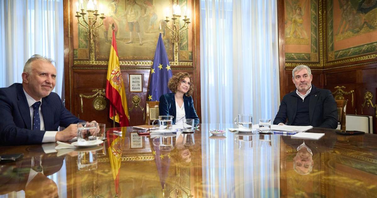 El Ministro de Política Territorial y Memoria Democrática, Ángel Víctor Torres, la ministra de Hacienda, María Jesús Montero, y el presidente de Canarias, Fernando Clavijo