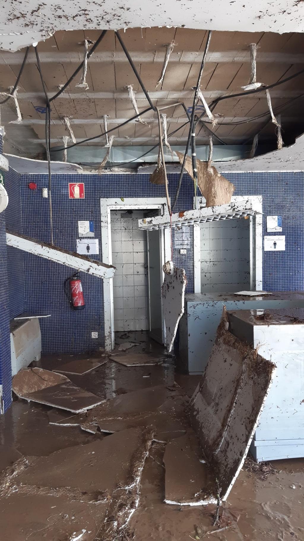 Adriana Perú, gerente de las instalaciones de Burlada, asegura que fue "una catástrofe. Hemos estado sin techo y sin luz durante meses, el agua superó los tres metros. Han sido 6 meses sin dejar de trabajar para llegar a tiempo", incide. Gracias a esas labores se han reformado la zona de accesos, vestuarios y la portería.