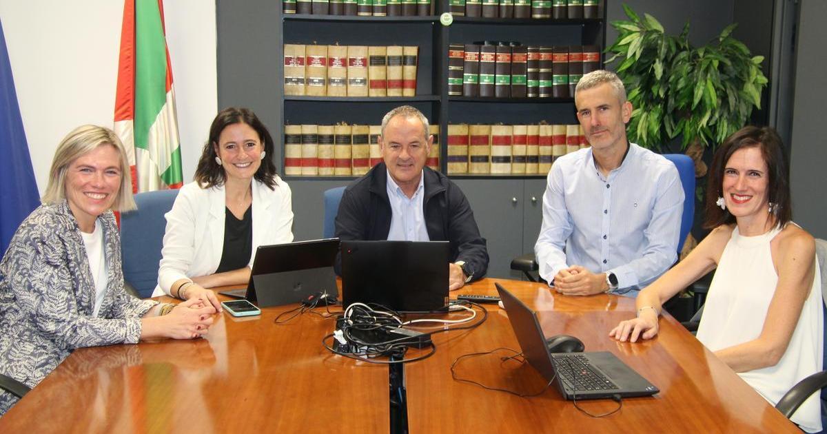 La alcaldesa Mireia Elkoroiribe, junto a la directora Iasmina Gorroño y el subdirector Paul Ortiz de Murua, se reunieron ayer con el delegado de Educación en Bizkaia, Iñaki Orbe, y su equipo para coordinar el cronograma y minimizar el impacto de las obras en la actividad académica.