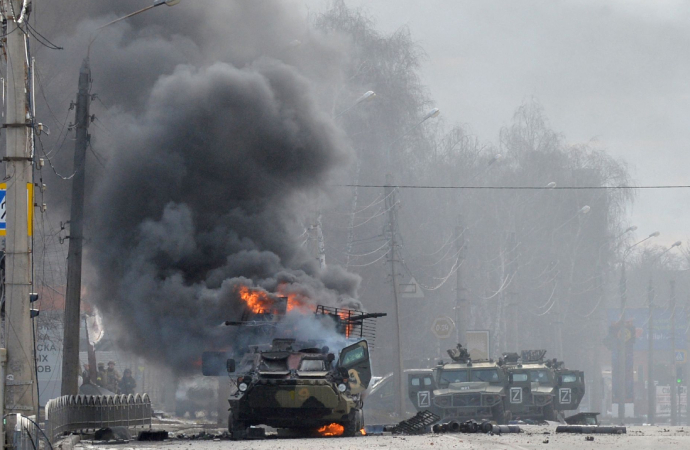 Un vehículo blindado ruso, destrozado por el fuego ucraniano. AFPLa guerra iniciada el jueves 24 ha causado bajas en ambos bandos, que los ucranianos sitúan en 197 entre militares y civiles.