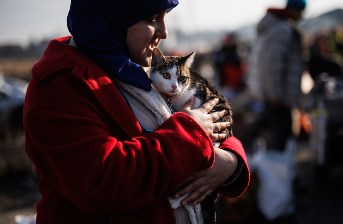na refugiada, con su gato, en el paso fronterizo de Medyka, Polonia. EPLa comisaria europea de Interior, Ylva Johansson, dijo que "sería el momento correcto" de usarla "para darle protección adecuada a la gente que huye y la posibilidad de quedarse en la UE".