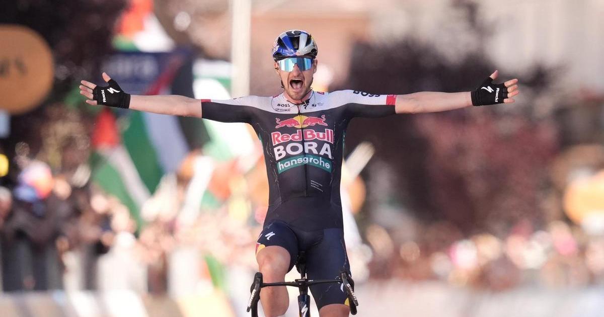 Denz, rodador poderoso, se desató cuando la fuga comenzó a fragmentarse al oler las flores de meta. El alemán mostró toda su potencia en un final trepidante que le coronó tras una exhibición de fuerza bruta. Halterofilia en bicicleta.