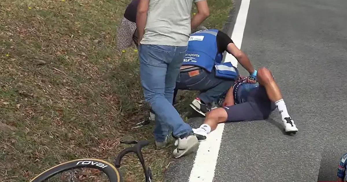 Mientras el ciclista estaba siendo atendido, se determinó que la responsabilidad del accidente fue del coche médico que vela por la seguridad y la integridad física de los ciclistas.