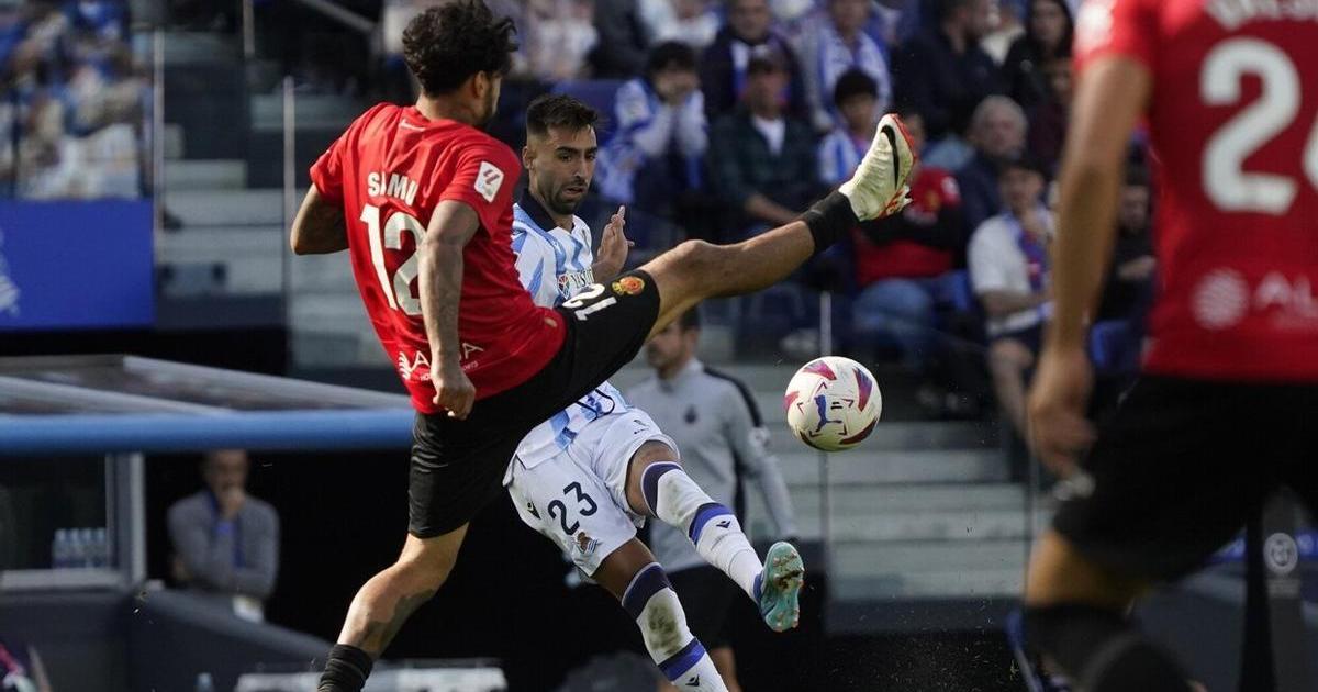 Brais envía un centro durante el partido ante el Mallorca del pasado octubre en Anoeta. / RUBEN PLAZA