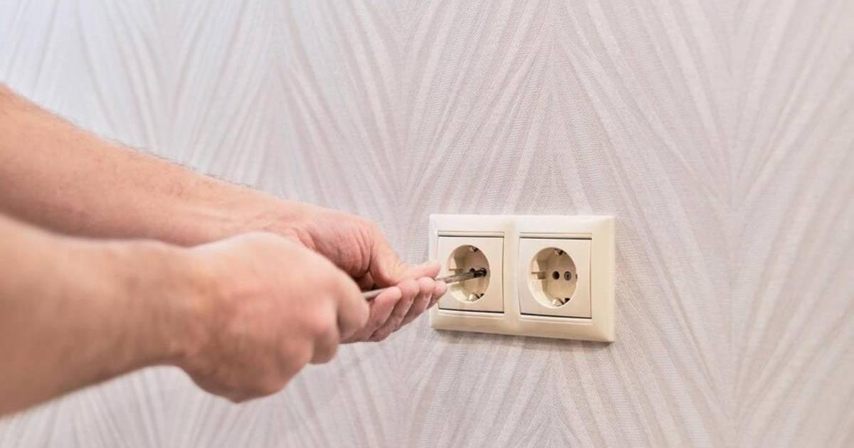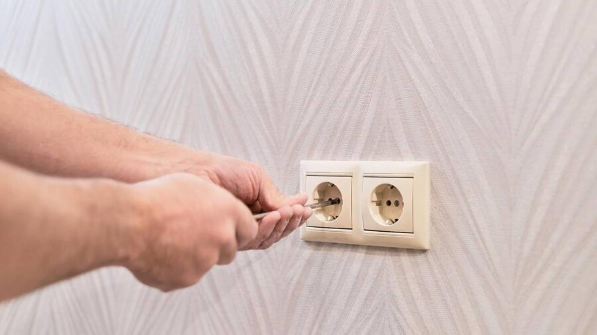 Una persona conecta un aparato a un enchufe eléctrico.