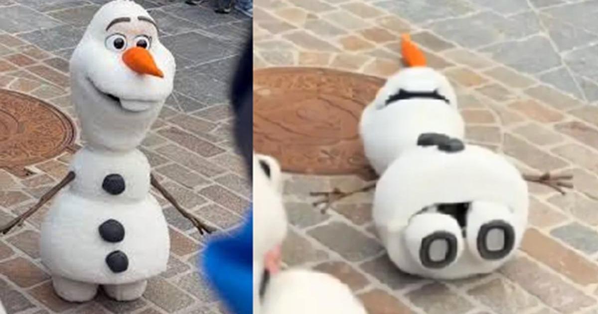 La magia de Disney no siempre funciona. Que se lo digan a Olaf, el muñeco de nieve más famoso de la película Frozen, al que parece que la llegada de la primavera no le ha sentado nada bien. Ya sabemos que la nieve es más propia del invierno, pero las imágenes que ha generado el entrañable muñeco en Disneyland París hace unos días han dado la vuelta al mundo por su desmayo, colapso, muerte o lo que haya sucedido con él cuando estaba siendo el centro de atención.