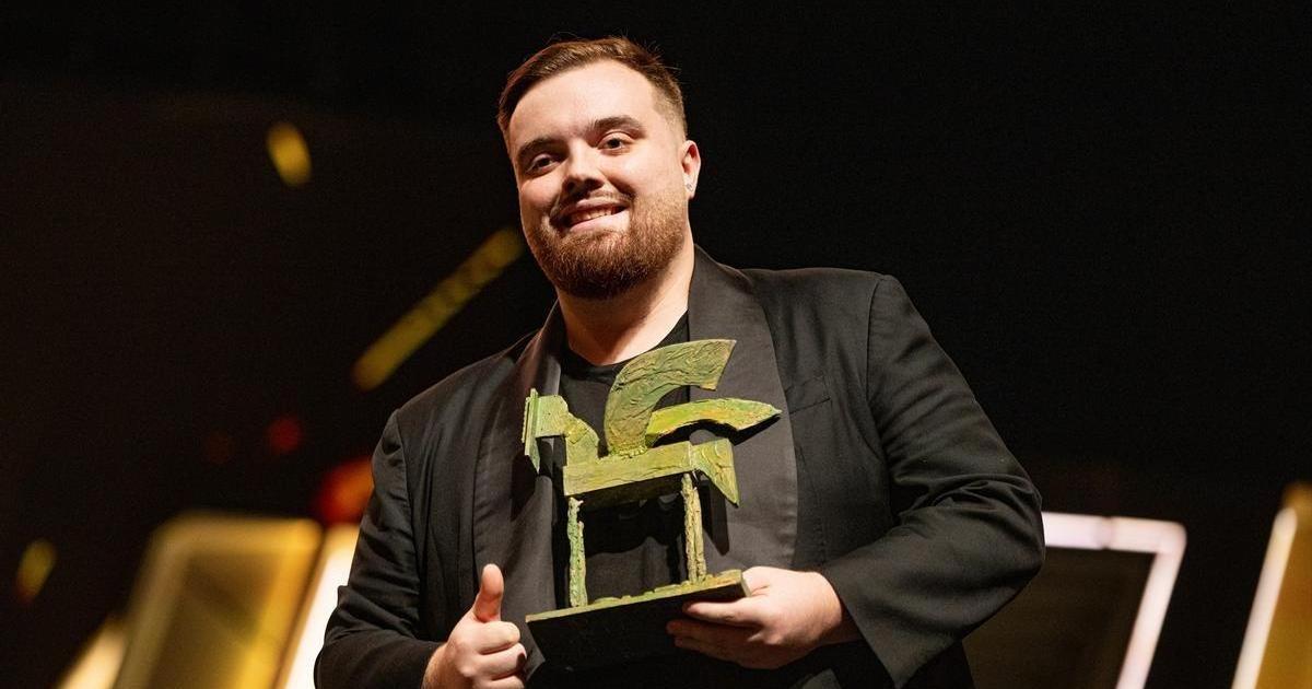 El streamer Ibai Llanos recoge un premio durante la gala de entrega de los Premios Ondas 2023. / EP
