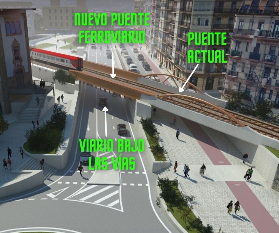 Una vez colocado el nuevo puente ferroviario, y tras realizarse la prueba de carga final, se restablecerá el servicio de trenes en ambos sentidos, ya que en la actualidad y tras el derribo del viaducto, solo se ha mantenido una sola vía. Tras reanudar el tránsito normal de trenes, se empezará a excavar el terreno para construir el nuevo viario bajo las vías, que es el que sustituye al ya desaparecido viaducto de Iztueta.