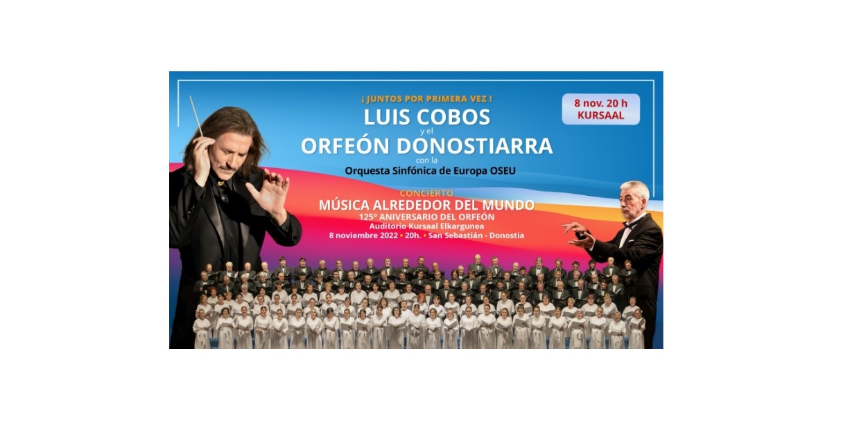 "Música alrededor del mundo". Es el concierto que el próximo 8 de noviembre ofrecerán el Orfeón Donostiarra y Luis Cobos en el Kursaal de Donostia. Por primera vez, dos grandes talentos de la música coincidirán en el escenario y estarán acompañados por la Orquesta Sinfónica de Europa (OSEU).