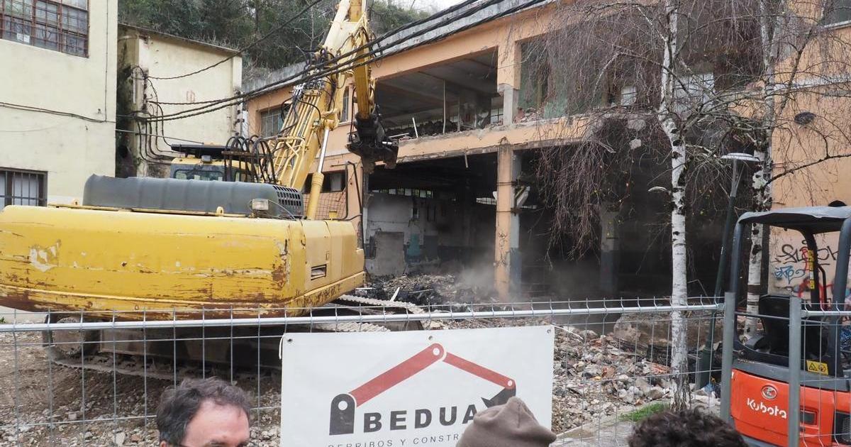 Las máquinas han comenzado a derribar la fachada con el objetivo de dejar limpia la zona y dar pie a la puesta en marcha de un proyecto para la construcción de un espacio para el aparcamiento de vehículos.