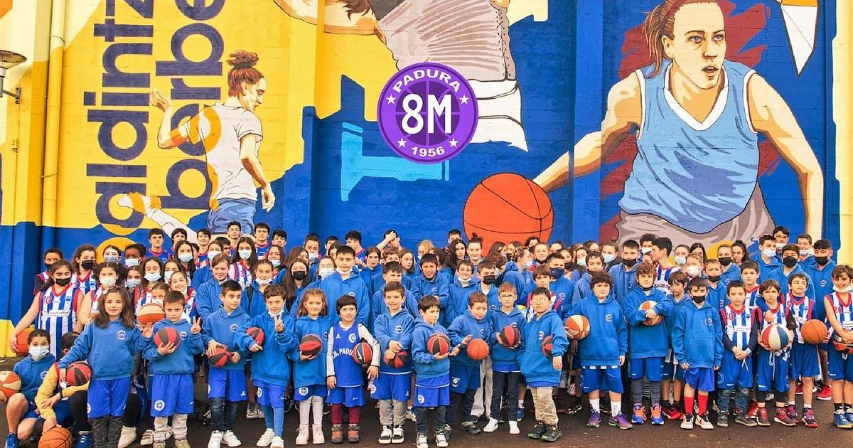 Diferentes categorías del club de baloncesto de Arrigorriaga, en el acto del pasado 8-M.