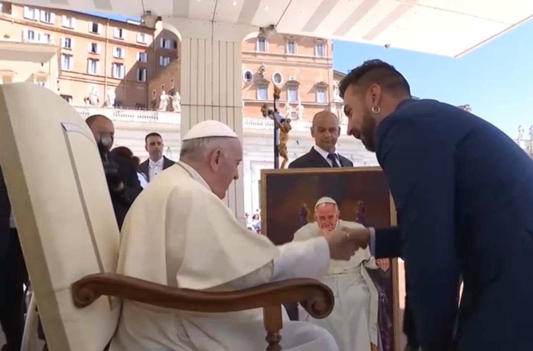 El periodista Ibon Pérez junto al alcalde de Lekeitio, Koldo Goitia cuentan en Onda Vasca la expectación que ha generado la visita al Vaticano para entregar el retrato que el pintor lekeitiarra Alberto López Brasaola realizó sobre el Papa Francisco.