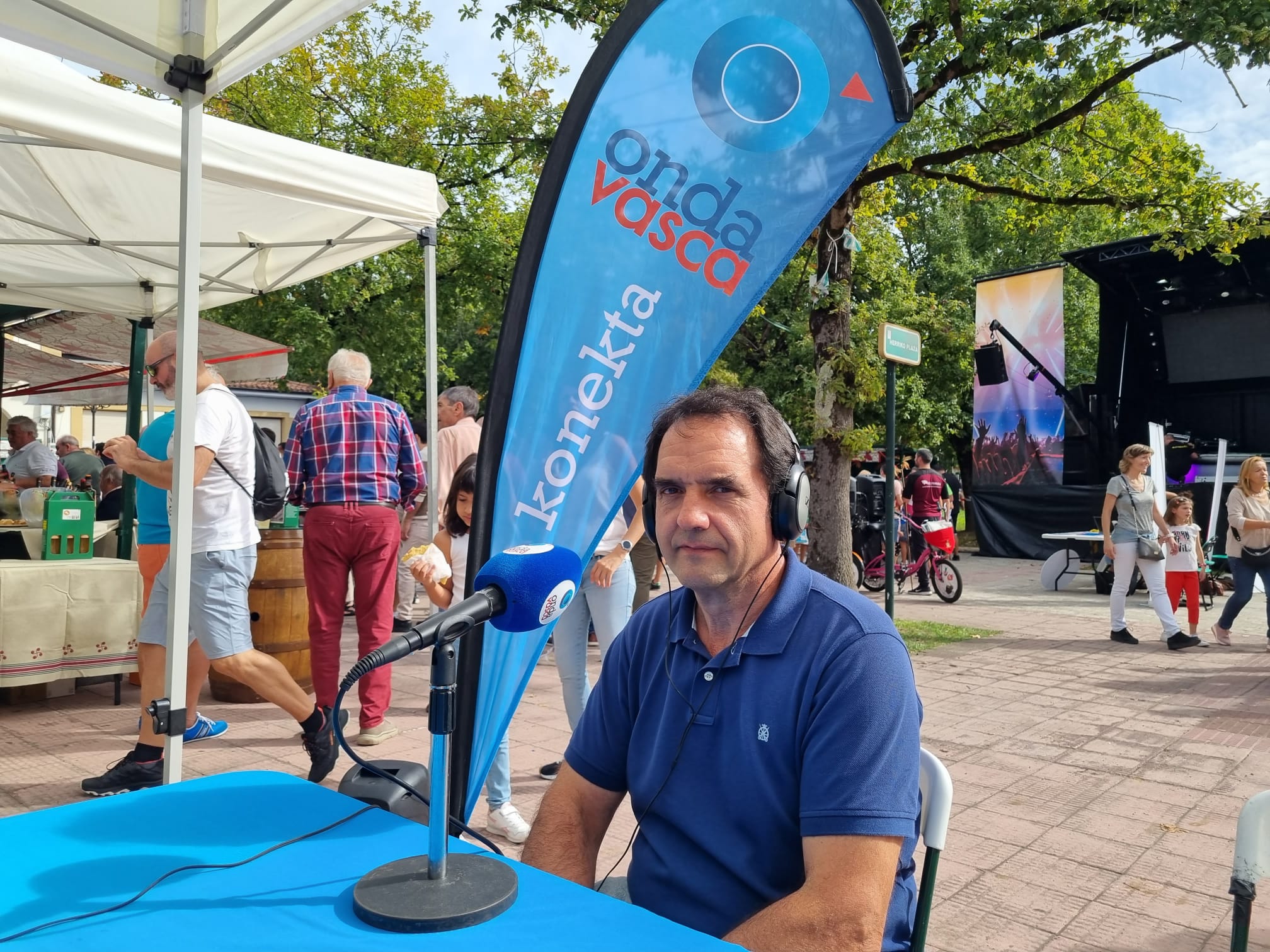 Jokin Etxebarria Atela, de Jata Ondo - Asociación de Desarrollo Rural, visita el set de Onda Vasca en el especial desde la Feria Agrícola y Ganadera de Loiu.
