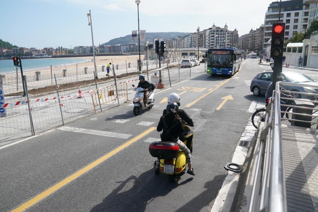 El paseo de la Concha ha abierto un segundo carril para el tráfico en la mañana de este lunes. La única vía de tráfico que ha funcionado en los últimos nueve meses para el transporte público de ambas direcciones (con paso alternativo) queda ahora para este mismo tipo de tráfico, aunque solo en dirección al Centro. El segundo carril abierto, sin embargo, es para todo tipo de tráfico, público y privado, en dirección a El Antiguo.