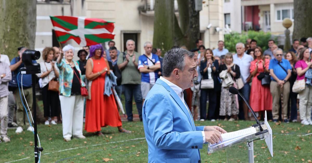 Esteban lanzó este mensaje durante el aniversario de la fundación del PNV, que se suele celebrar el 31 de julio pero que este año se ha adelantado a este lunes 28 para que el presidente del EBB pueda participar en la fiesta de la diáspora vasca de Estados Unidos, el Jaialdi de Boise, al que también asiste el lehendakari Pradales. El partido jeltzale ha conmemorado sus 130 años de historia con una ofrenda floral ante la estatua de Sabino Arana, en Jardines de Albia, en Bilbao, en un día lluvioso que finalmente escampó lo suficiente para que se acercara una multitud de simpatizantes. Entre ellos estaba el expresidente del EBB, Andoni Ortuzar, quien está cumpliendo su promesa de ser un militante de base más. El acto arrancó tras el tradicional aurresku de honor. Este es el primer aniversario que protagoniza Esteban como presidente de la Ejecutiva nacional del PNV, y llega en un momento de cambios dentro del partido para dar proyección a nuevos perfiles y superar el desgaste que experimentó en el último ciclo electoral tras la pandemia del coronavirus. En cualquier caso, sigue liderando las principales instituciones vascas a pesar del empate a 27 escaños con EH Bildu en el Parlamento Vasco, el nuevo EBB se ha propuesto dar mayor protagonismo a Nafarroa e Iparralde para profundizar en su implantación en estos territorios, y sus cinco escaños siguen siendo decisivos para el Gobierno español de Pedro Sánchez.