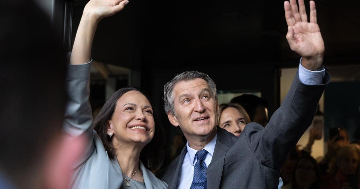 "Queda desplazar esta estructura criminal del poder y para ello, y también lo registrará esa historia que escribiremos juntos, requerimos a nuestros genuinos aliados del mundo entero, porque la lucha por la libertad es universal y aquí en España se está librando también la lucha por la libertad de Venezuela y de nuestras naciones". Así lo ha afirmado en la sede del PP al inicio de su encuentro con el líder de la oposición, Alberto Núñez Feijóo, que al recibirla la ha calificado de valiente.