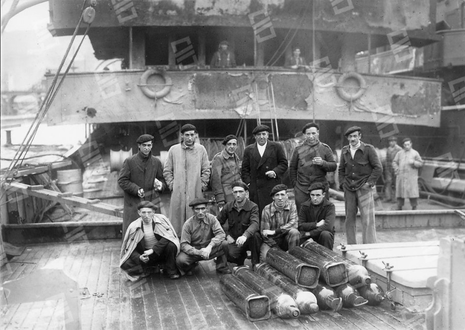 El historiador Luis de Guezala nos explica lo ocurrido un 15 de noviembre de 1936 a unas 40 millas de Pasaia donde tuvo lugar una de las heroicas batallas que libró la fuerza naval vasca, compuesta por pesqueros artillados conta buques de la armada franquista. En la imagen, algunos de los tripulantes de Bou Gipuzkoa.