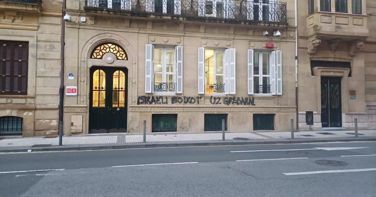 En concreto, la fachada de la sede socialista ha amanecido con un inscripción realizada con pintura negra en la que podía leerse la frase "Israeli boikot. U2 Grebara!", en alusión al paro estudiantil convocado para este jueves en contra del "genocidio en Gaza".