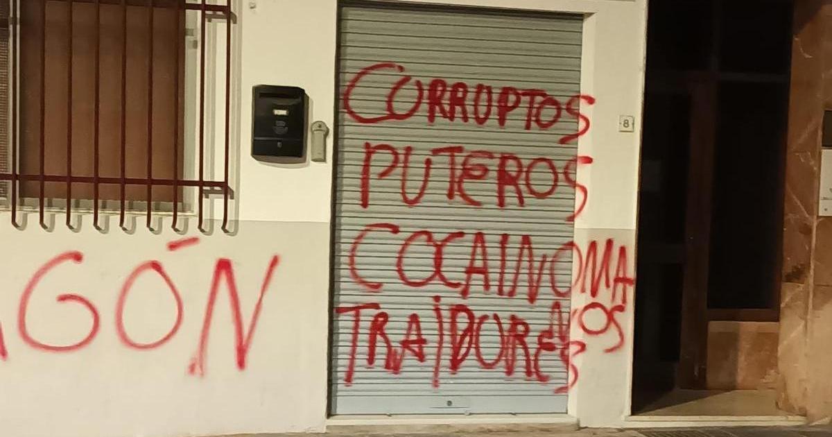 El último ataque lo ha sufrido la sede del PSIE en Vera (Almería), que este lunes ha amanecido con pintadas ofensivas como "corruptos", "puteros", "cocainómanos" o "traidores". Es la tercera vez que vandalizan este local.