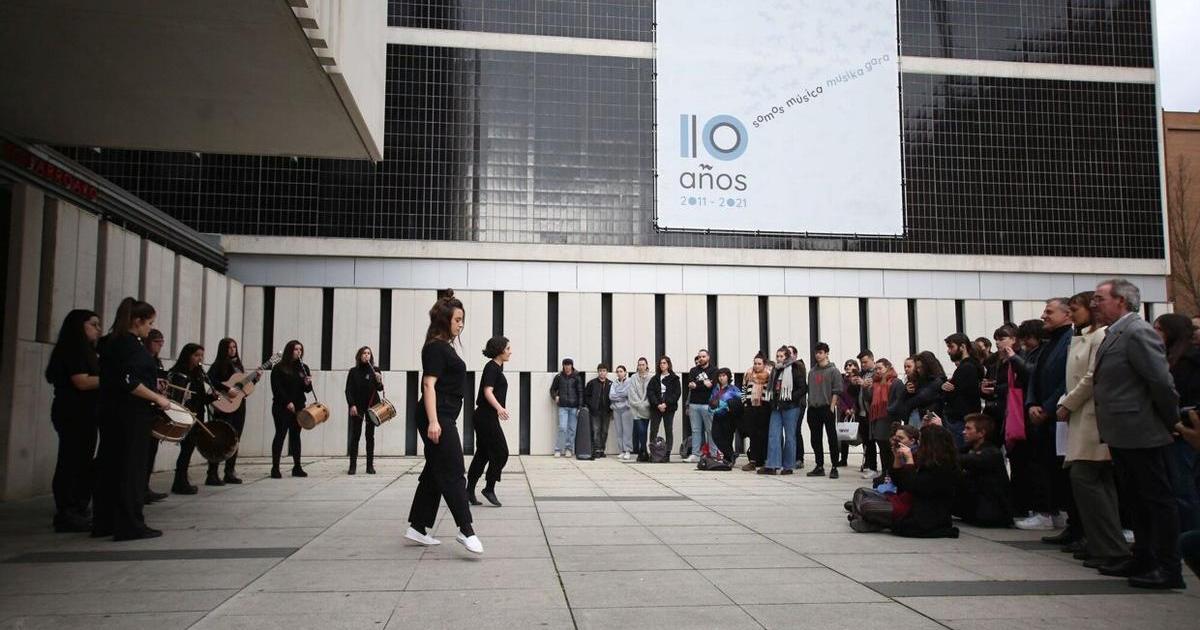 La jornada central del festival ha arrancado con un aurresku en la entrada del Conservatorio Superior.