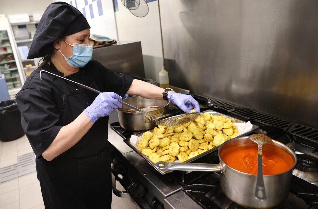 La fiesta ha comenzado en el Albergue-Cachopería, con el recibimiento a las autoridades, cofradías y demás invitados, con un aperitivo –como no podía ser menos– para entrar en calor. A las 11.30 horas han salido en comitiva acompañados por dantzaris y txistularis recorriendo las calles de Atarrabia despertando la curiosidad de vecinas y vecinos, además de alguna que otra sonrisa mientras sonaban A Pamplona hemos de ir y Ánimo pues, entre otras perlas, que siempre recuerdan a buenos tiempos. A Sanfermines, a fiesta, a celebración y, por supuesto, a buen comer.