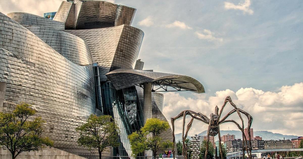 El Museo Guggenheim Bilbao es uno de los iconos arquitectónicos más reconocibles del mundo y símbolo de la transformación urbana de la ciudad. Inaugurado en 1997, fue diseñado por el arquitecto canadiense-estadounidense Frank Gehry, cuya propuesta rompió con los esquemas tradicionales mediante un edificio de formas curvas y volúmenes orgánicos revestidos en titanio, piedra caliza y vidrio. Su construcción se enmarcó dentro de un ambicioso plan de regeneración de Bilbao tras la crisis industrial, convirtiéndose en el emblema del llamado “efecto Guggenheim”, que describe cómo una infraestructura cultural puede revitalizar económica y socialmente una ciudad. Situado junto a la ría de Nervión, el museo no solo alberga importantes colecciones de arte contemporáneo, sino que en sí mismo es considerado una obra escultórica de gran escala que dialoga con el entorno urbano y fluvial.