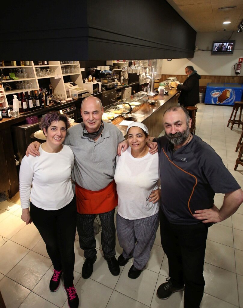 Sara Murugarren, Carlos Lizarraga, la cocinera Yrene Acosta y J.J. Chas, en representación de los parroquianos, posan en el bar El Rincón. La "ilusión por agradar"