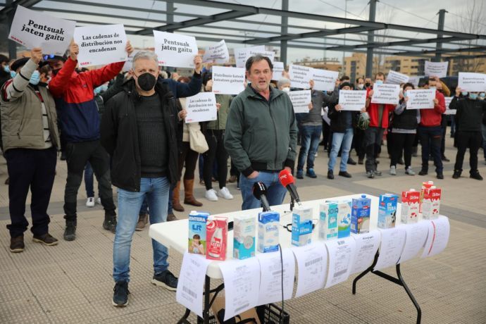 Bariáin, por su parte, ha valorado como "muy importante" la unidad de acción entre UAGN y EHNE y ha cargado contra las marcas blancas de las líneas de los supermercados, "ya que directamente están asesinando ganaderos y explotaciones, granjas que van a cerrar por culpa de estas marcas". "Tener un lineal con los precios que hay es una auténtica aberración, tiene que entrar la ley de la cadena a saco, y eso significa que el Gobierno de Navarra tendría que tomar medidas ya", ha indicado.