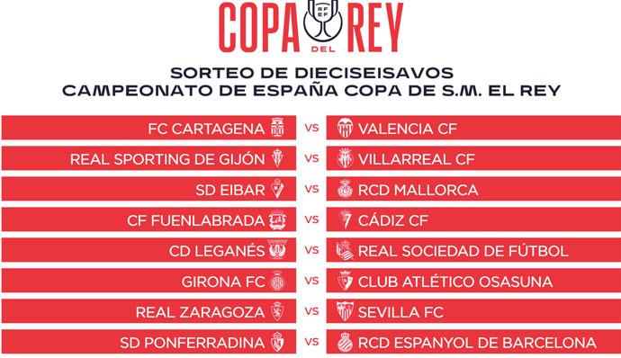 --EMPAREJAMIENTOS DE DIECISEISAVOS DE LA COPA