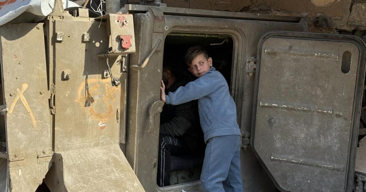 El tanque israelí abandonado en Gaza que se ha convertido en un negocio de carga de teléfonos móviles