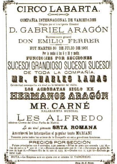 El sábado 25 de julio se hizo una gran función que a pesar de la que se consideraba hora intempestiva, las doce de la noche, tuvo gran afluencia de público. Se trataba de la pantomima en 15 cuadros titulada Los Gigantes de Calabria, una especie de obra teatral en la que participaron todos los componentes de la compañía y que tuvieron que repetir varios días más, dada la demanda de los espectadores. El Teatro Circo Labarta se había consolidado como uno de los locales más frecuentados en las fiestas de aquellos años.