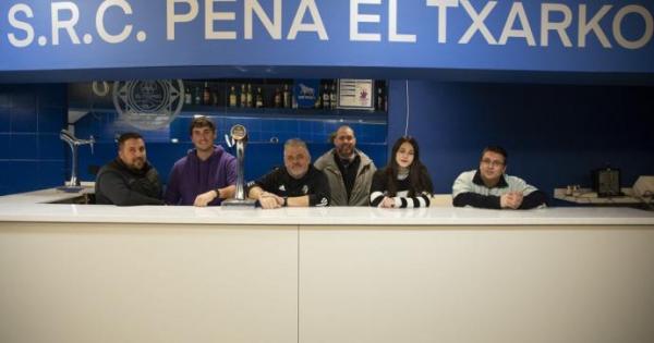 Socios del Txarko posan en la nueva zona del bar de la peña