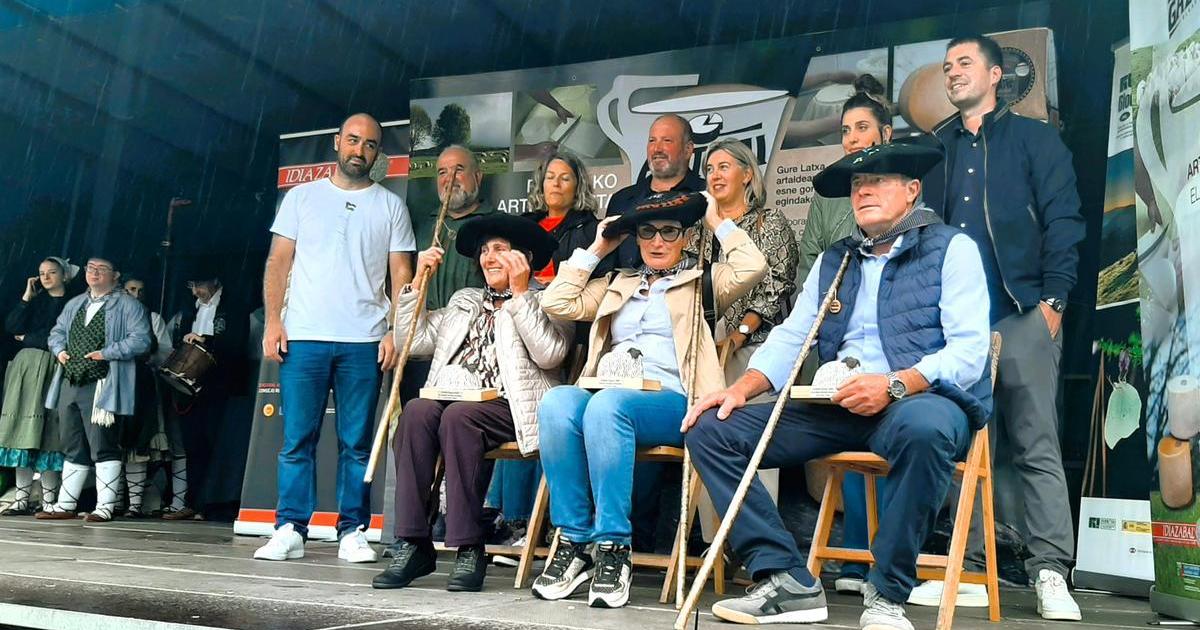 Los pastores lucieron su mejor sonrisa pese a que la lluvia deslució su homenaje / Araceli Oiarzabal