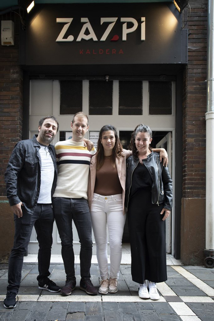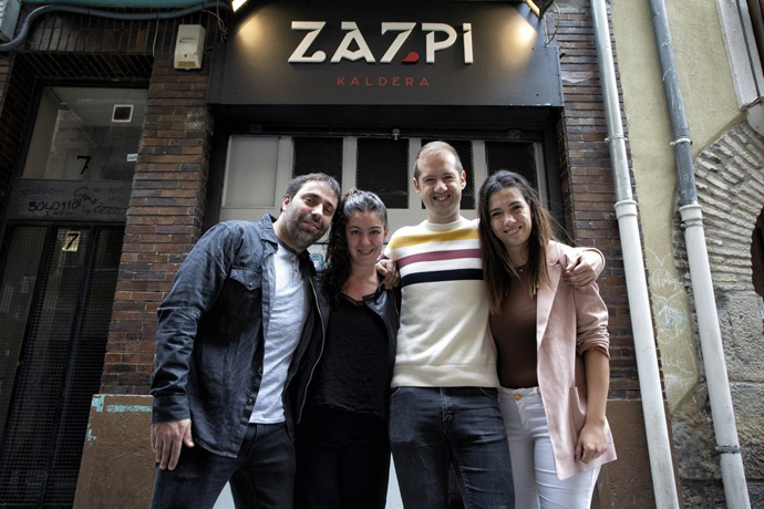 La idea está clara y se resume rápido: "Ambiente fiestero y buen rollo". El antiguo Sua y menos antiguo Suberri ha vuelto a la carga tras más de un año con la persiana bajada. Aritz, Edurne, Aitor y Natalia son los nuevos responsables del Zazpi, con sus puertas abiertas jueves, viernes y sábados. El logo ya luce junto al número 7 de la calle Calderería de Pamplona. El 7 de San Fermín y de las provincias vascas. "Un nombre de consenso que nos gustaba a los cuatro", reconocen.