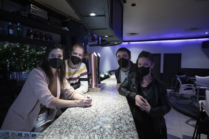 "Hemos entrado cuando hemos tenido la oportunidad, pensando en un futuro cercano", apunta Aitor, vecino de Barañáin, con la mente puesta en la vieja normalidad. "Y con este equipo puede salir adelante", asegura Aritz. Los cuatro garantizan que tirarán "buenas copas" con variedad de marcas. En un ambiente sin complejos: lo mismo puede sonar un tema euskaldun que Rafaela Carrà, Kaotiko, Juan Luis Guerra, reguetón o flamenco. Música "fiestera, variada y bailonga". Porque, independientemente del estilo, "a la gente lo que le gusta es bailar", afirman. Por último Edurne, vecina de Arakil, dice que es "duro estar encima de la gente, ponte la mascarilla, no te levantes... normas que nos han impuesto y debemos transmitir. Ofrecemos un lugar con buen rollo y fiesta, pero también pedimos que entiendan la situación. Y que se animen y vengan a conocernos. Se lo van a pasar bien".