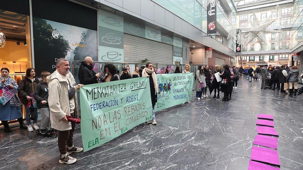 Una protesta el primer día de rebajas visualiza el conflicto en pleno centro de Donostia