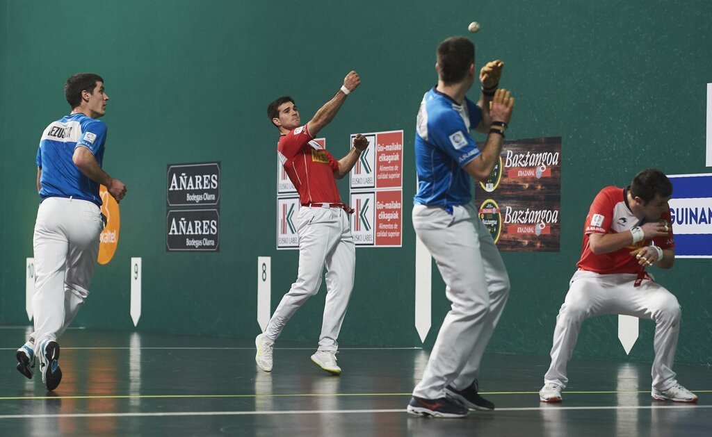 Las intenciones se vieron claras desde el principio. Elezkano II-Zabaleta se creyeron desde el principio que podían lograrlo. El vizcaíno, que acabó con 14 tantos hechos, hizo los cuatro primeros con sendos remates. No hubo rastro de la poca confianza que habían mostrado en los anteriores partidos. Elezkano acabó todo lo que tuvo y el navarro gozó con la derecha.