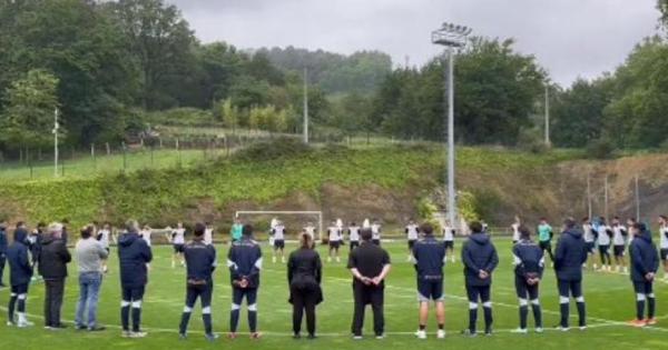 Minuto de silencio a Mitxel Badiola en el entrenamiento de Zubieta. / REAL SOCIEDAD TWITTER