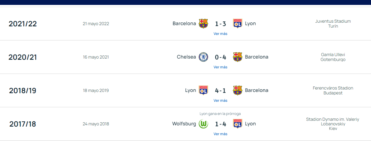 Por alguna extraña razón, esta final no aparece en la web del organismo que organiza la competición. Es cierto que fue una edición especial, pero es incomprensible su ausencia en la lista de todas las finales. La de Anoeta fue la segunda celebrada en el Estado, puesto que en 2010 se disputó en el Coliseum Alfonso Pérez. Por tanto la de San Mamés será la tercera, que espera romper el récord de espectadores con un Barça - Lyon que promete.