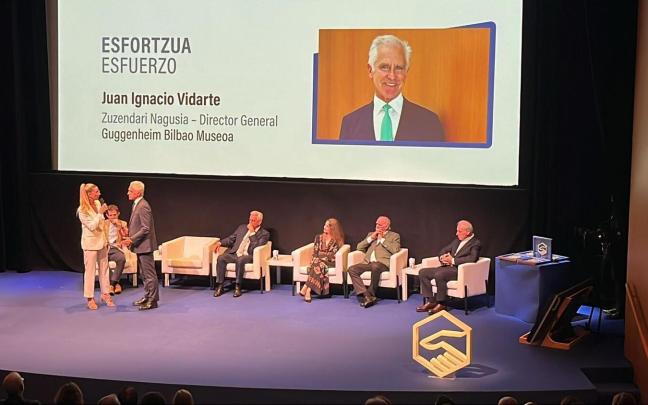Juan Ignacio Vidarte, director general del Museo Guggenheim Bilbao, recibió el reconocimiento al 'Esfuerzo', por su perseverancia y superación de hacer realidad un proyecto, a veces utópico, que ha resultado todo un símbolo de nuestra identidad. Tras recibir el galardón por parte de David Martínez, consejero delegado de Iberdrola Energía España, Vidarte hizo mención a valores como "la integridad, el compromiso, la lealtad, o el esfuerzo" y aprovechó, además, para dedicar el premio "a la sociedad vasca que ha estado detrás de este proyecto desde hace 32 años".