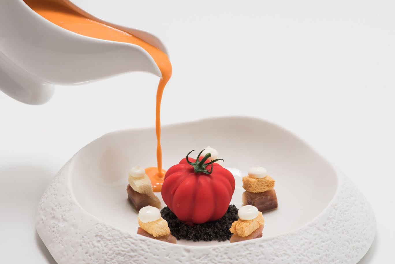 La Guía Michelin describe su menú degustación (que cuesta 89 euros) como "de tinte actual" y que "encuentra en Navarra la piedra angular desde la que arranca su propuesta, centrada en los productos de temporada, en su incondicional amor por la huerta y en la defensa a ultranza de los pequeños productores del entorno". Y recomienda un plato en concreto, un postre, Transformación, "pues evoluciona ante los sorprendidos ojos del comensal para narrarnos la metamorfosis que lleva al gusano de seda a convertirse en mariposa".