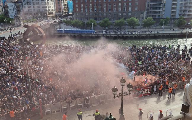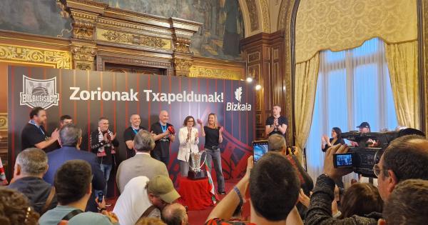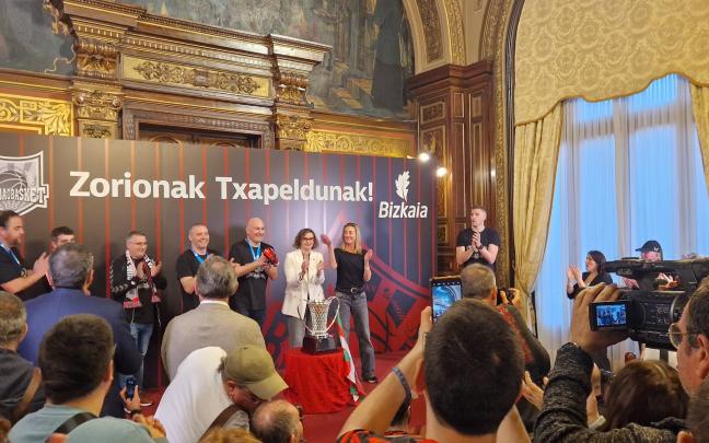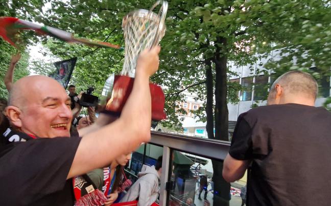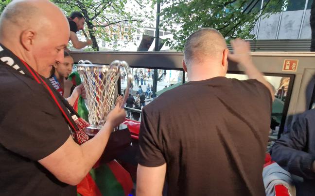 La plantilla y el cuerpo técnico de Bilbao Basket han acudido al Ayuntamiento y a la Diputación Foral de Bizkaia para recibir el reconocimiento de las diferentes instituciones. A su vez, han pasado por las calles de Bilbao en bus descapotable, donde la afición ha respondido a las mil maravillas.