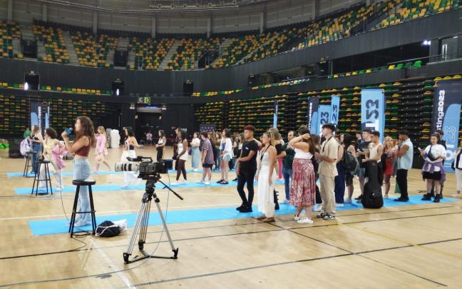Esto en la cola de llegada, nervios y respiración entrecortada pero en la de salida, risas, abrazos y alguna lagrimita de emoción al saber que han pasado a la segunda fase del casting que se celebra esta tarde a puerta cerrada: "soy de Venezuela y vivo en Pamplona, es indescriptible lo que sientes en la cola, hay una parte de ti que no quiere que llegue tu turno, pero cuando llegas coges el micro y hay que darlo todo".