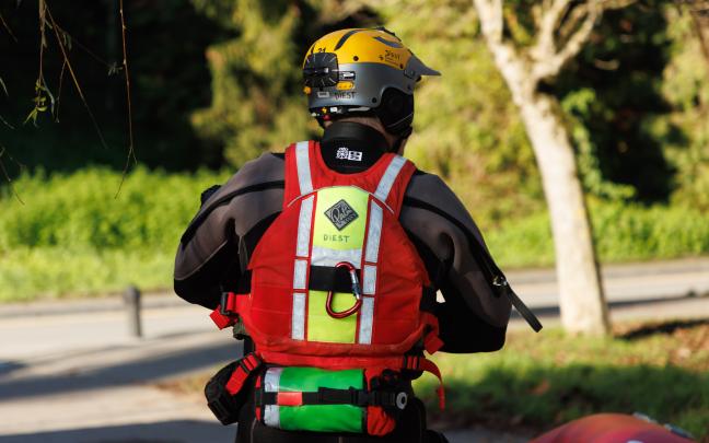 En las intervenciones que se realizan en superficie, el buzo lleva también un chaleco de rescate, una cuerda de rescate y el casco. El chaleco incluye un bolsillo cerrado con una cremallera, en el que se guardan mosquetones, poleas y cintas, elementos que permiten un adecuado aseguramiento que se emplea, por ejemplo, para salir del río en zonas difíciles. Asimismo, sirven para hacer reenvíos a un polipasto para, por ejemplo, poder desatascar una embarcación.